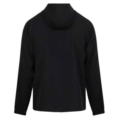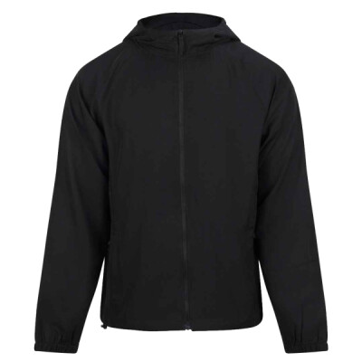 60% polyester/40% recycled polyester. Wicking quick drying fabric. Relaxed fit. Raglan sleeves. Three panel hood with toggles. Full length zip. Two front zip pockets. Elasticated cuffs. Hem with toggles. Tear out label.