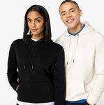 85% organic combed cotton/15% recycled polyester. Brushed back fleece.Drop shoulder style.Straight fit.Lined hood with self colour drawcord.Recycled metal eyelets and drawcord tips.Jersey taped neck.Half moon back yoke.Front pouch pocket.1x1 ribbed cuffs and hem.Twin needle stitching.Tag free.Recycled polyester is made from post-consumer waste.