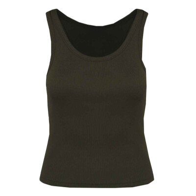 98% organic combed cotton/2% recycled elastane. Stretch fabric. Emzyme washed. Slim fit. 2x1 rib. Racer back style. Ribbed bound neckline and armholes. Single needle hem. Tag free.